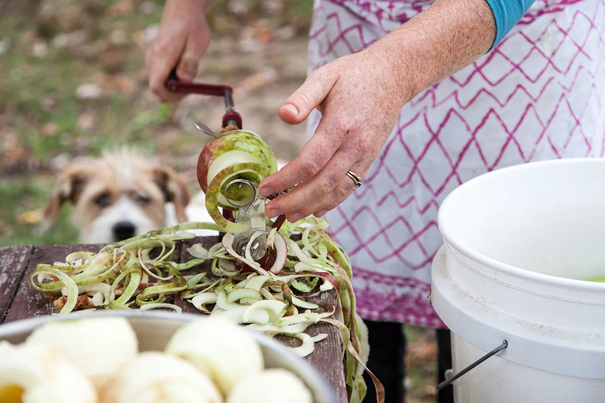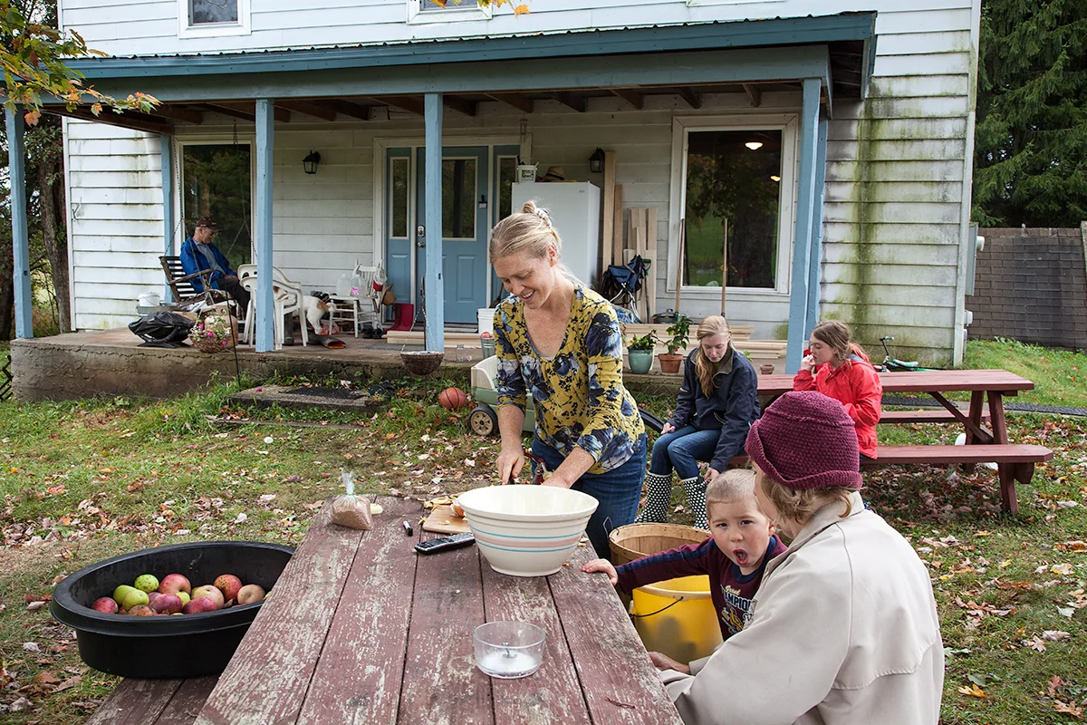 Prepping the apples for applesauce, lots and lots of apples, became a family event