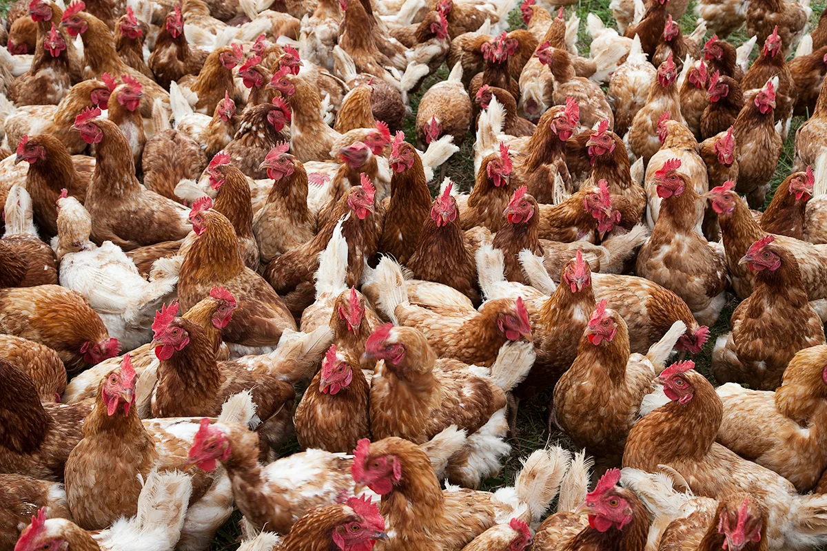 They raised those 1,000 birds in ten batches of 100 birds, so the animals were well taken care of. The photo below may give the impression that the birds are crowded, but they are not. Those girls are in a large pasture and roam freely throughout the day. When I entered their space, they all came rushing up to greet me. There was about half a football field of fenced pasture behind these birds. As soon as they realized I wasn’t there to give them grain, they lost interest in me and ran away.